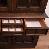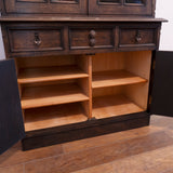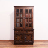 製品紹介:当店で人気の扉のガラスデザインが格子型の食器棚。幅は1mもないにも関わらず、大容量で収納力は抜群です。また、抽斗も細かく分かれており、カトラリー類なども分類して収納していただけます。この食器棚が1つあれば、すっきりと食器類をまとめていただけるかと思います。