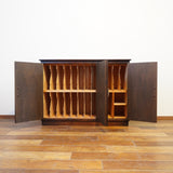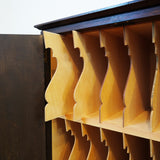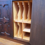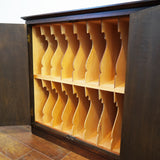 製品紹介:元々レコードキャビネットとしてお作りさせていただいたものかと思います。内部の仕切りは取り外すことも可能ですので、収納されるものに合わせて幅を変えられます。完全オーダーメイドでお作りした商品ですので、同じものが出てくることはございません。