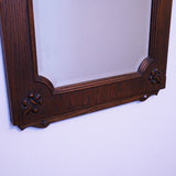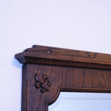 サイズ:W550×D55×H770製造年代:1980年代素材/仕上げ:ナラ/墨ぼかしワックス仕上げ製品紹介:アンティーク商品としてはあまり出てくることのない、小型の壁掛け鏡となっております。四方に隅モッコと呼ばれるデザインとチルダと呼ばれる彫刻があしらわれております。