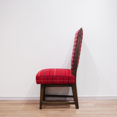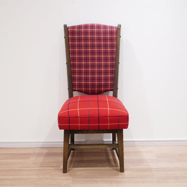 製品紹介:背と座で異なる生地を張ったおしゃれなデザインとなっております。ダイニングや書斎用としてはもちろん、インテリアのアクセントとしてもお使いいただける椅子となっております。