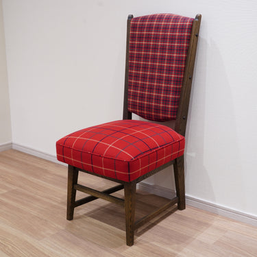 【張替】椅子の座面及び背面の生地を張り替えるとともに、内部のスプリングやウレタンも全て新しいものへ交換しています。