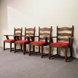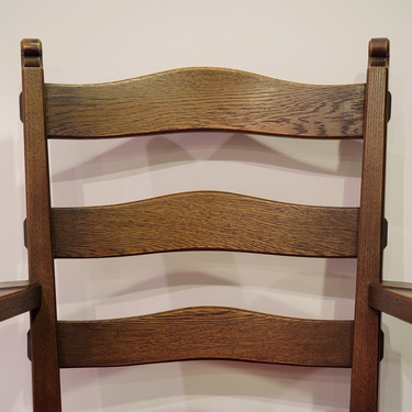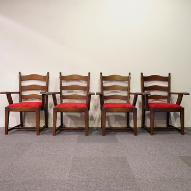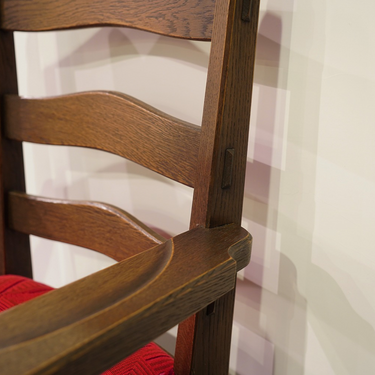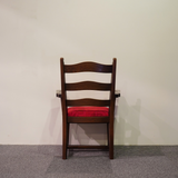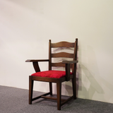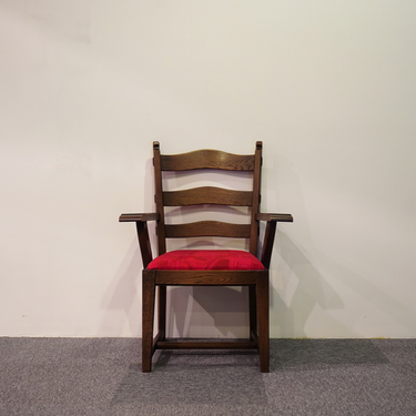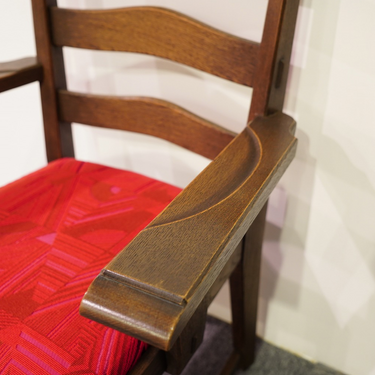 製品紹介:当店では定番のラダー型のアームチェアとなっております。生地はモダンな柄で赤みの強いピンク色でお部屋を明るく見せてくれます。在庫は残り3点となっております。