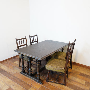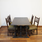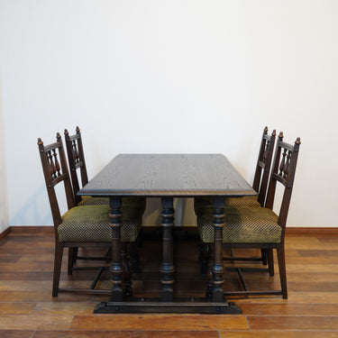 製品紹介:4本脚ではなく、短辺側に3本ずつクリモノ脚があしらわれている珍しいデザインのダイニングテーブル。大きすぎないサイズ感ながらも高級感のある商品となっております。別売りのソロバン型座張小椅子との相性が良く、合わせてダイニングセットとしてお使いいただくことも可能です。その場合は、椅子に合わせてテーブルの高さを2㎝程高くすることをお勧め致します。
