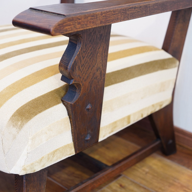 【張替】椅子の座面及び背面の生地を張り替えるとともに、内部のスプリングやウレタンも全て新しいものへ交換しています。