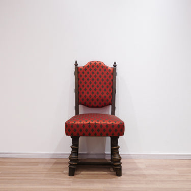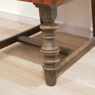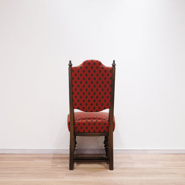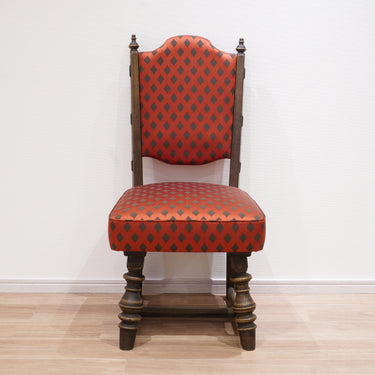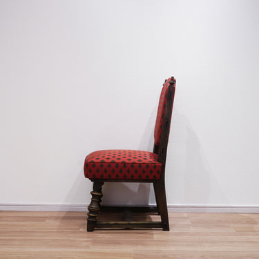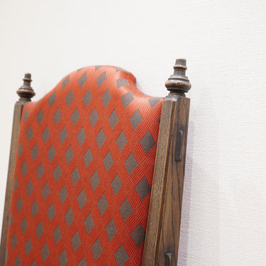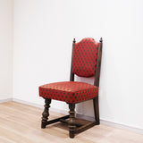 製品紹介:脚のクリモノや背もたれ上部のギボシが特徴的なエレガントなデザインが目を引く商品です。フランスのNOBILIS社のサラッとした質感の生地がよりクラシックな雰囲気を引き出しております。