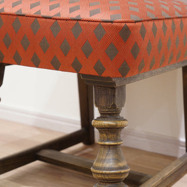 【張替】椅子の座面及び背面の生地を張り替えるとともに、内部のスプリングやウレタンも全て新しいものへ交換しています