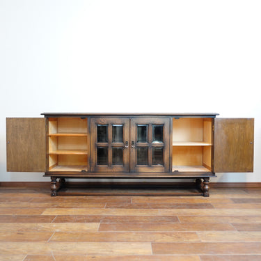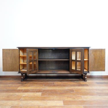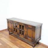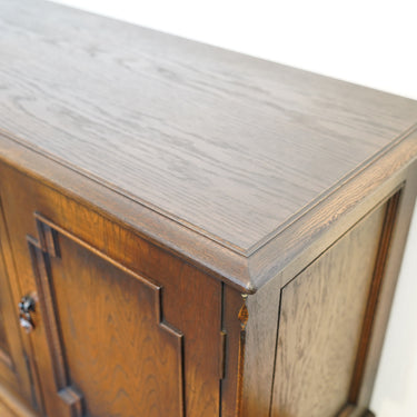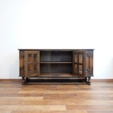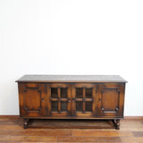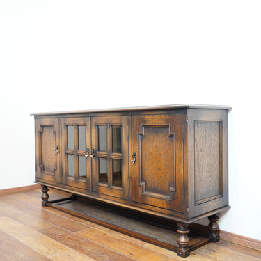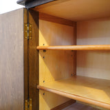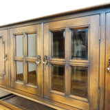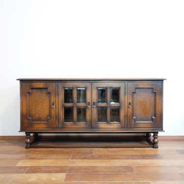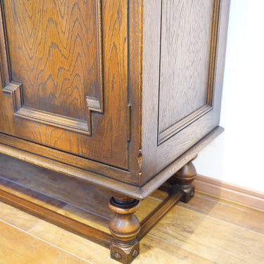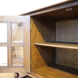 製品紹介:格子型のデザインが人気の4枚扉のサイドボード。お部屋を圧迫しないようなサイズ感で、お花や置物を飾って、お部屋を彩ることができます。左右両側の扉内部には可動棚があり、収納力も抜群です。