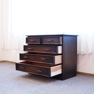 製品紹介:幅も高さも小ぶりなタイプの整理ダンス。リビングや寝室などに置かれても、圧迫感なくお使いいただけます。タンスの上にテレビを置いてテレビ台代わりにもお使いいただけます。