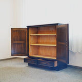 製品紹介:元々、下駄箱としてお使いいただいていた商品です。内部もきれいにしておりますので、本や書類などを収納するキャビネットとしてでもお使いいただけます。下部に引き出しがついており、細かいものも収納いただけます。