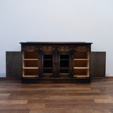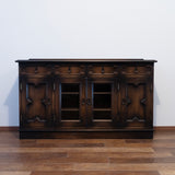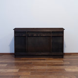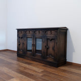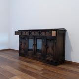 製品紹介:上部に引き出しが配置されたこちらのサイドボードは収納力抜群です。シンプルながらも、引き出しや側面にはデザインが施されており、とてもバランスの取れた商品となっております。